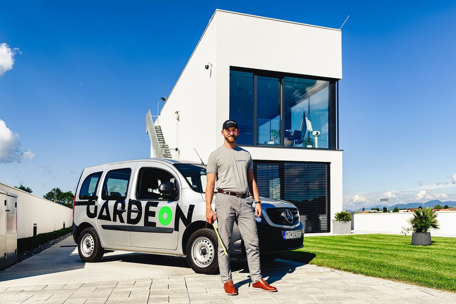 Ha a garázs a ház mellett áll majd, mérje meg a hosszát (mélységét) a ház falával párhuzamosan, és itt is helyezzen el egy második karót (vagy más jelölőt): ez lesz a hátsó sarok. Ezután a két kijelölt ponttól merőlegesen mérje ki a garázs szélességét, és állítson fel újabb két karót. Ha a négy sarok a helyén van, kösse össze őket a madzaggal. Így pontos képet kap arról, mekkora helyet foglal majd el a garázs a telken.