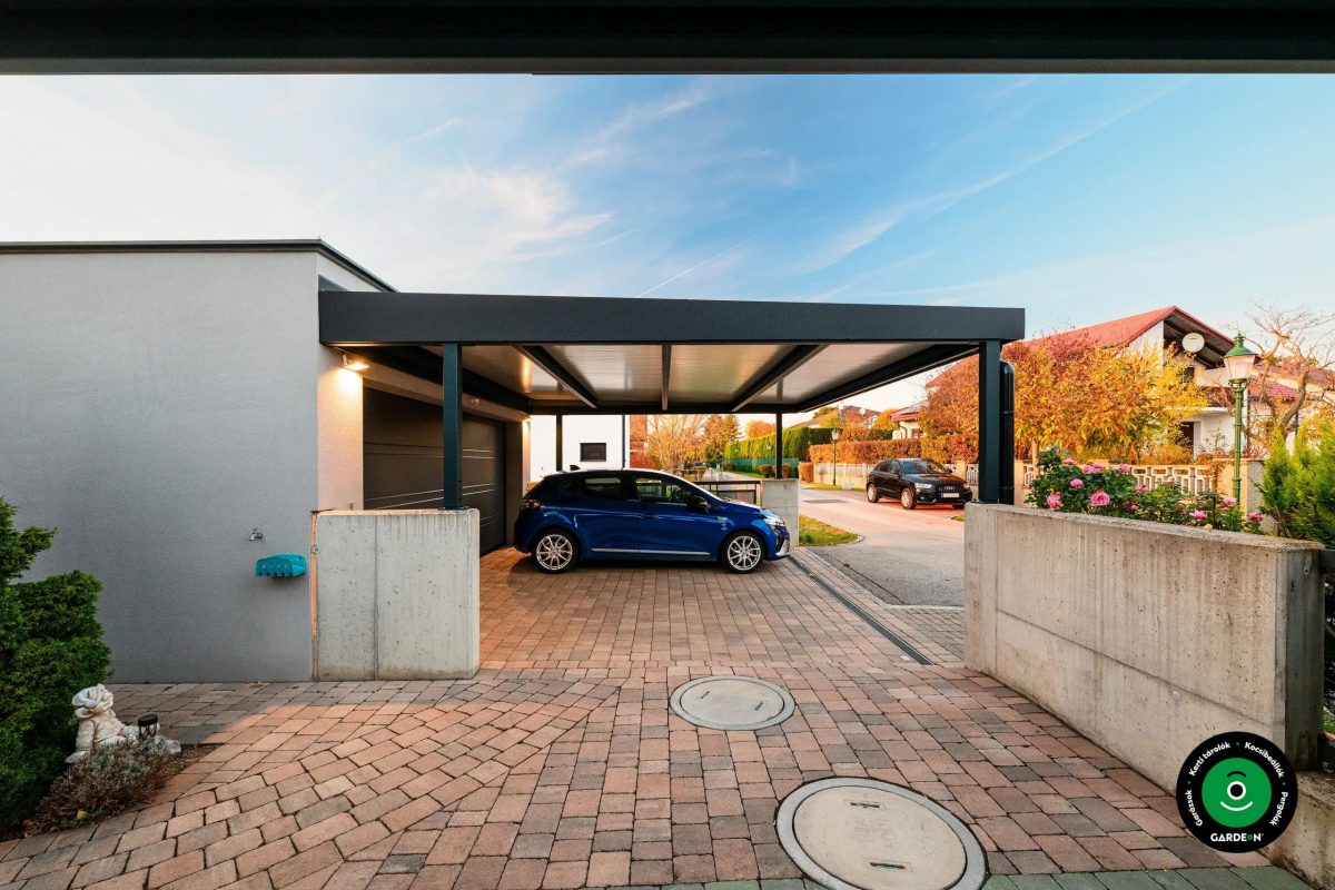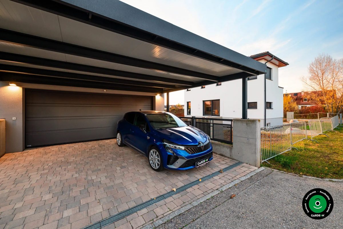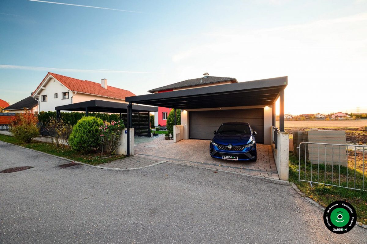 Fotógalériánkban rengeteg inspirációt és praktikus lehetőséget is találhat a garázs és az előtető kombinálásához.