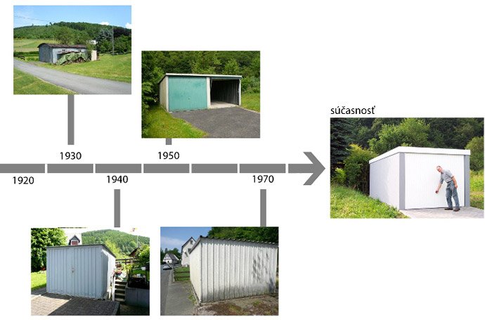 A acélból gyártott lemezgarázsok története Németországban az 1930-as évek elejére nyúlik vissza. Mivel a járművek drágák voltak és ma is azok, a tulajdonosok természetesen garázsban szerették volna látni őket. A legkönnyebben elérhető anyag, amely a használat során a legjobb költség–haszon arányt kínálta, az acél volt. Így jöttek létre az első, ún. hullámlemezgarázsok jellegzetes külső megjelenésükkel, íves tetővel és lengőajtókkal.