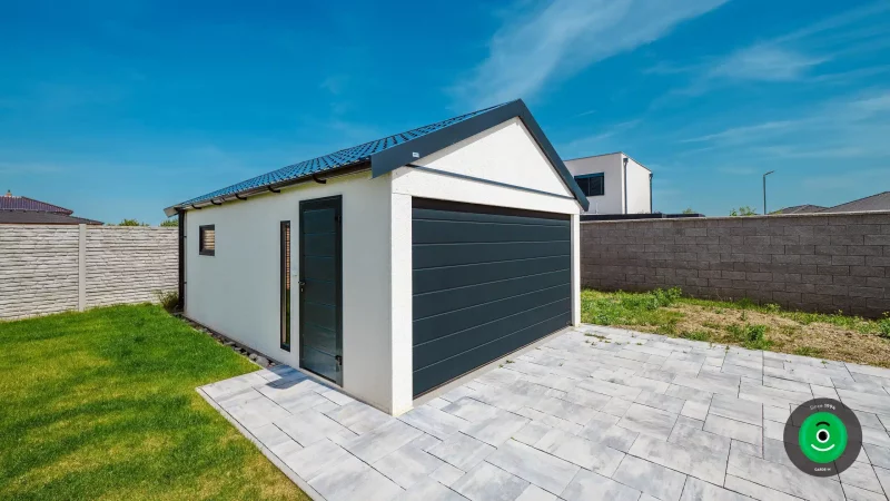 Kész vakolatú acélgarázsaink lényege a korszerű szerelési technológia. A teljes épület nagyon gyorsan és tisztán állítható össze a helyszínen, mivel a mobil panelek a felületkezeléssel együtt pontosan méretre készülnek. Nemcsak strapabíró acéllemezből készült panelek közül lehet választani, hanem rendkívül hatékonyan szigetelő PIR-panelt, vagyis poliuretánhab-réteggel ellátott szendvicspanel garázst is.