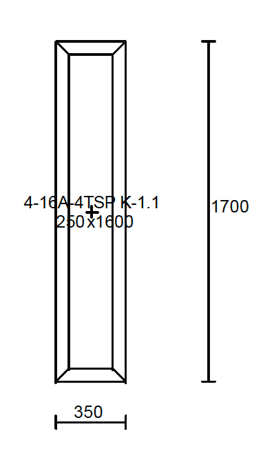 A GARDEON tetőablak telepítési méretei – 350 x 1700 mm