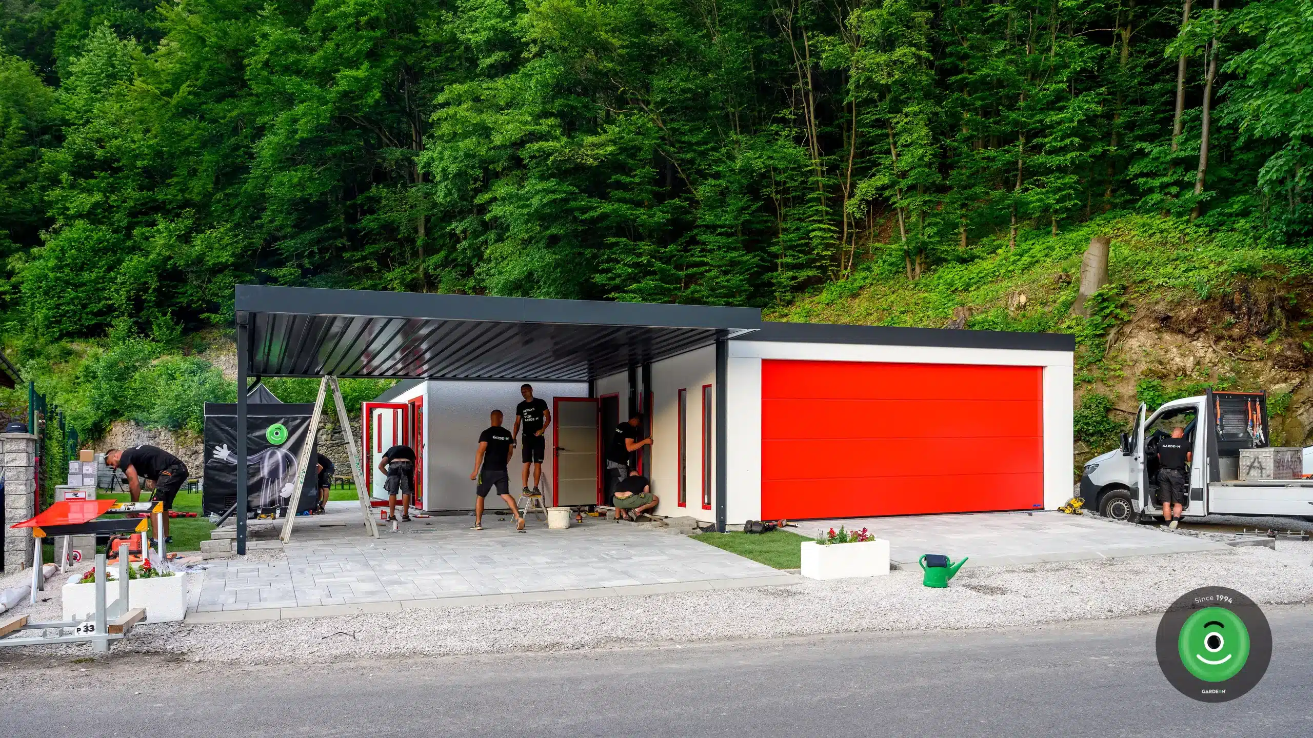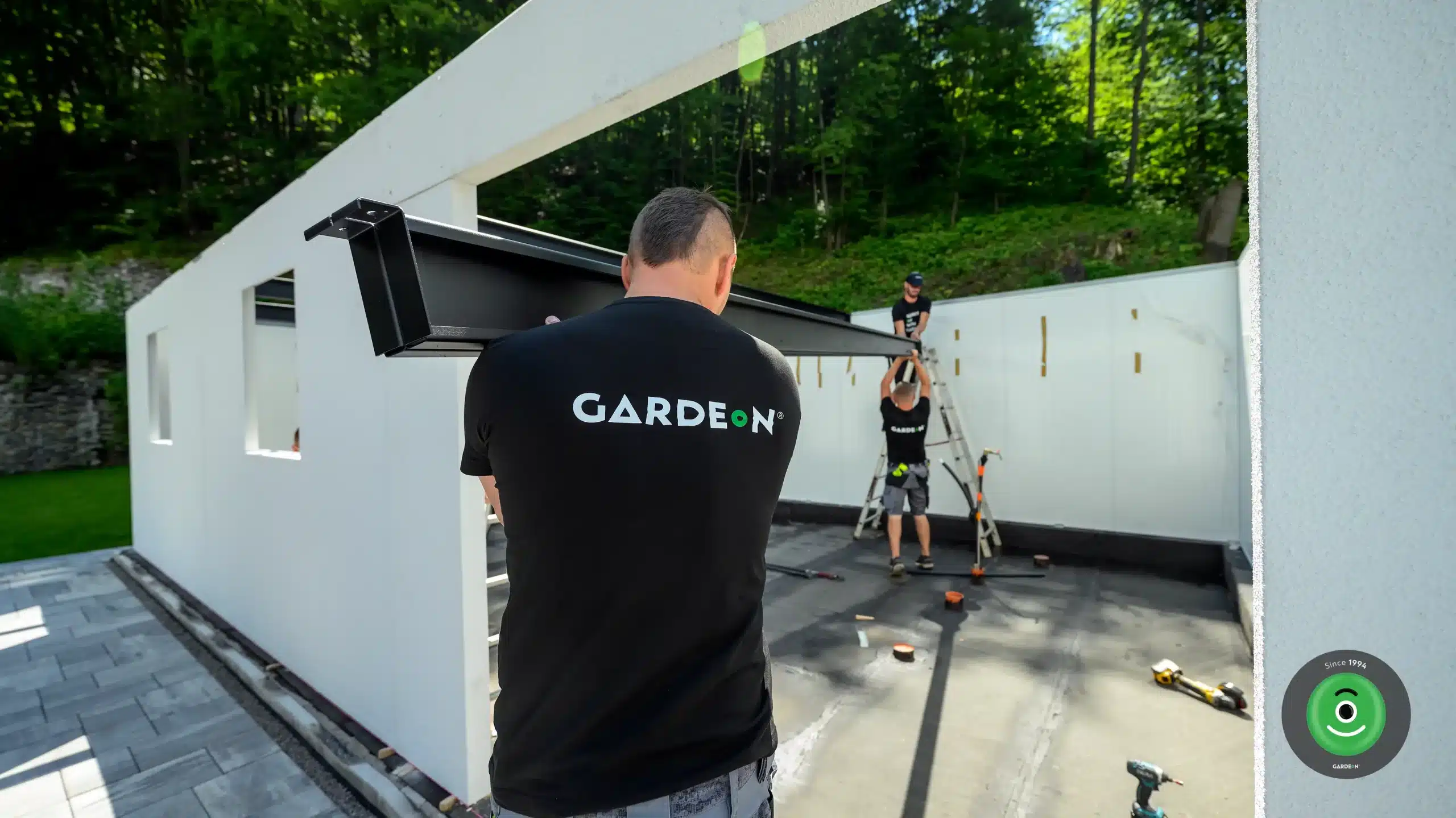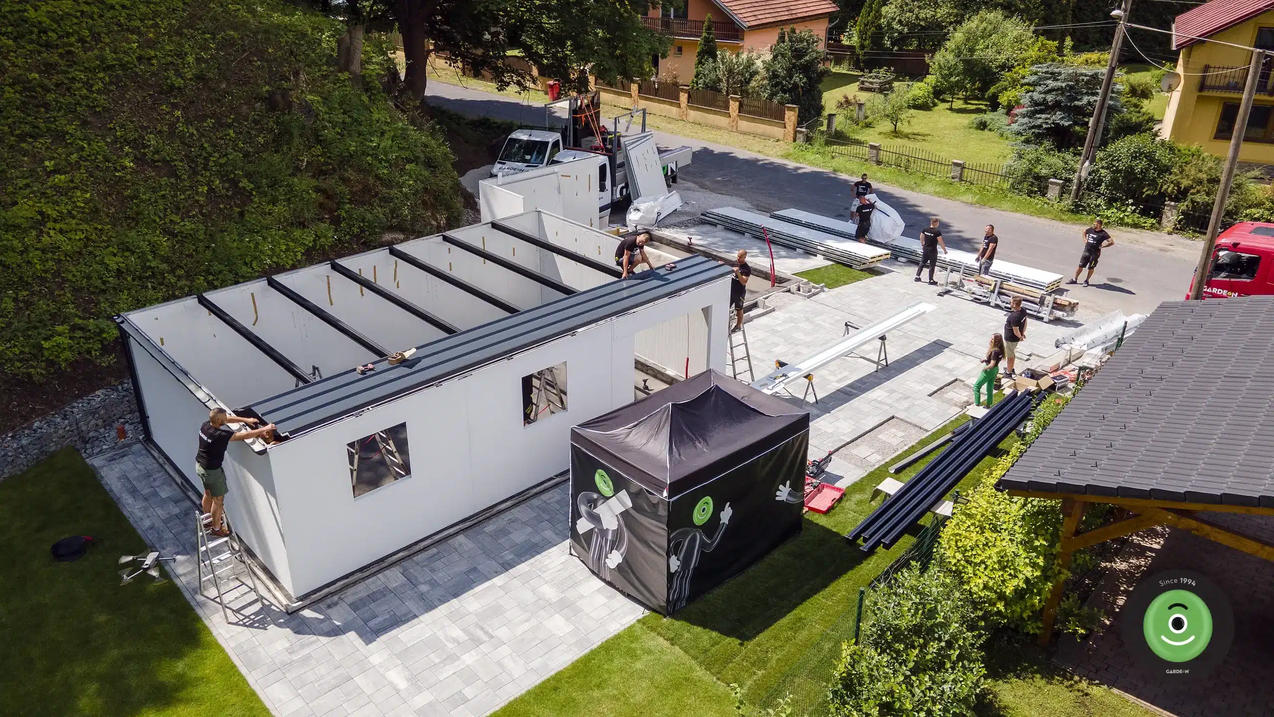 Ügyfeleink előre egyeztetett időpontban számíthatnak a GARDEON kocsijára, amely mindent a megjelölt helyre szállít: minden szerkezeti alkatrészt és professzionális szerszámot. Előnye, hogy praktikus autóinkkal szinte bárhová eljuthatunk. Ezután a jármű személyzete gondoskodik az alkatrészek kipakolásáról és összeszereléséről.