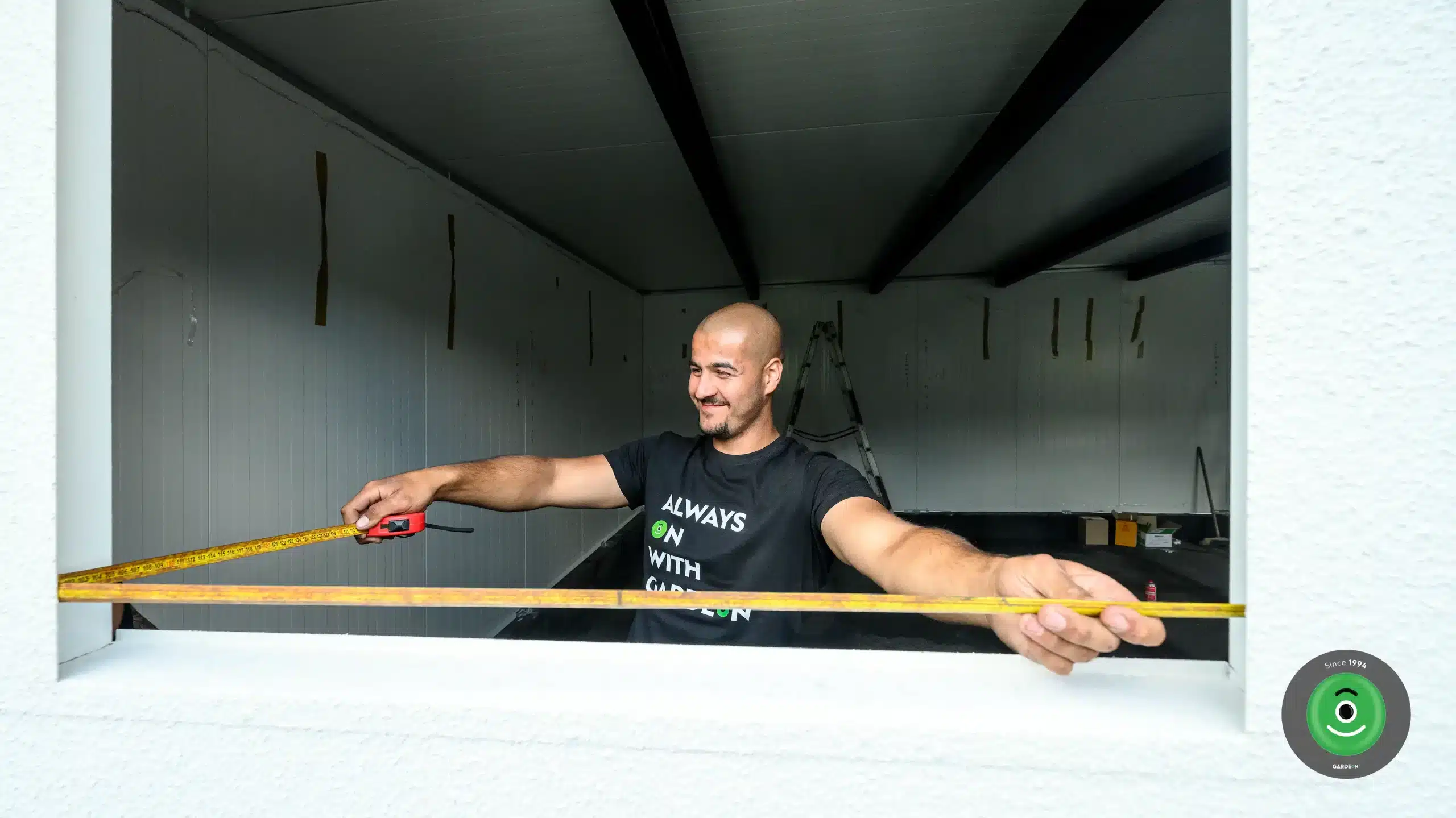 Ezt követi a beépítés pontosságának ellenőrzése: szerelőink alaposan lemérik az átlókat, hogy mindenhol megfelelő derékszög alakuljon ki. Amikor minden a megfelelő helyen van, a falpaneleket az alaphoz rögzítik.