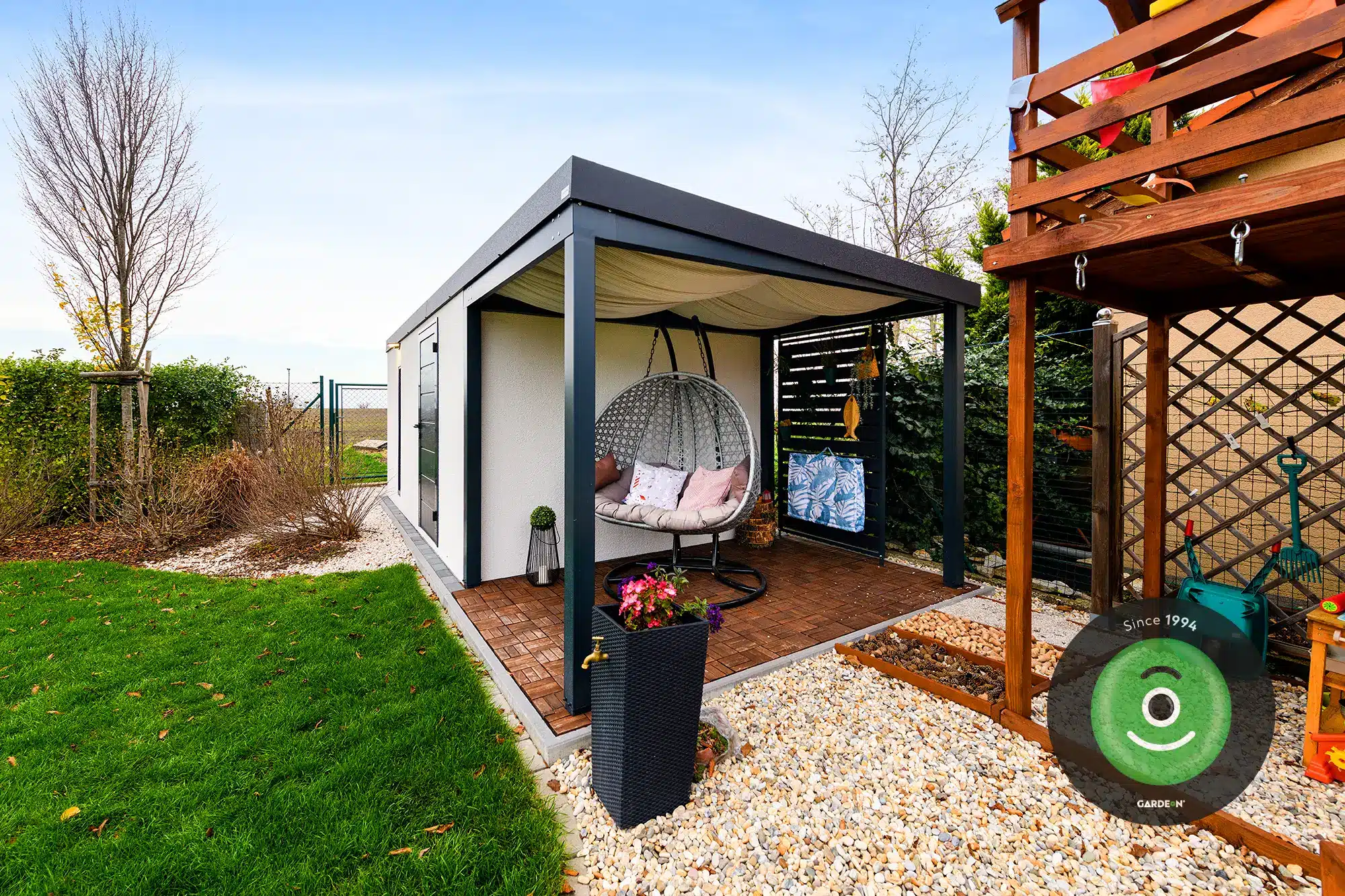 Videó – kerti tároló pihenősarokkal