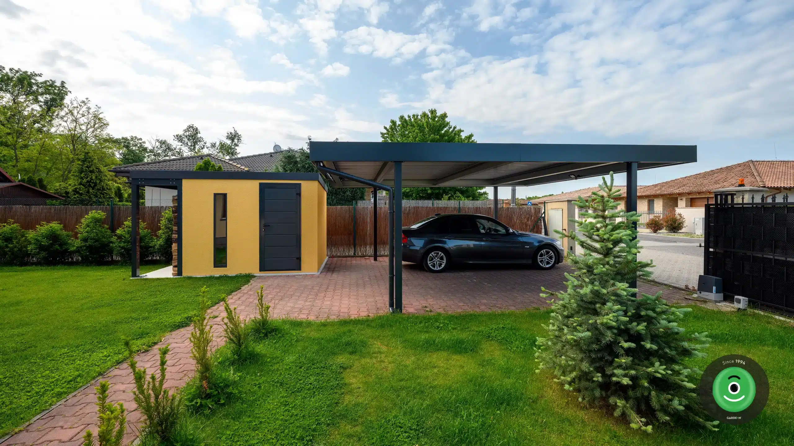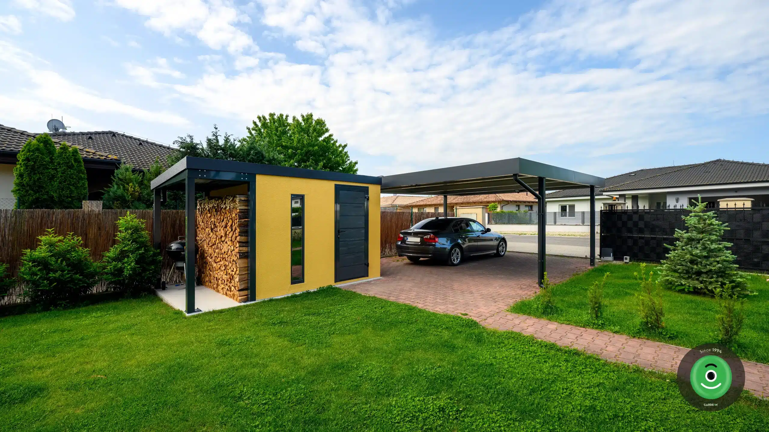 A tárolóhoz tartozó nyitott előtető igény szerint kapcsolódhat hozzá elölről, hátulról, bal vagy jobb oldalról, ahogy Önnek megfelel. A vakolat, az attika és a burkolat színét is kiválaszthatja ízlésének megfelelően, a házhoz és környezetéhez illően. Természetesen mindent elintézhet kényelmesen otthonról.