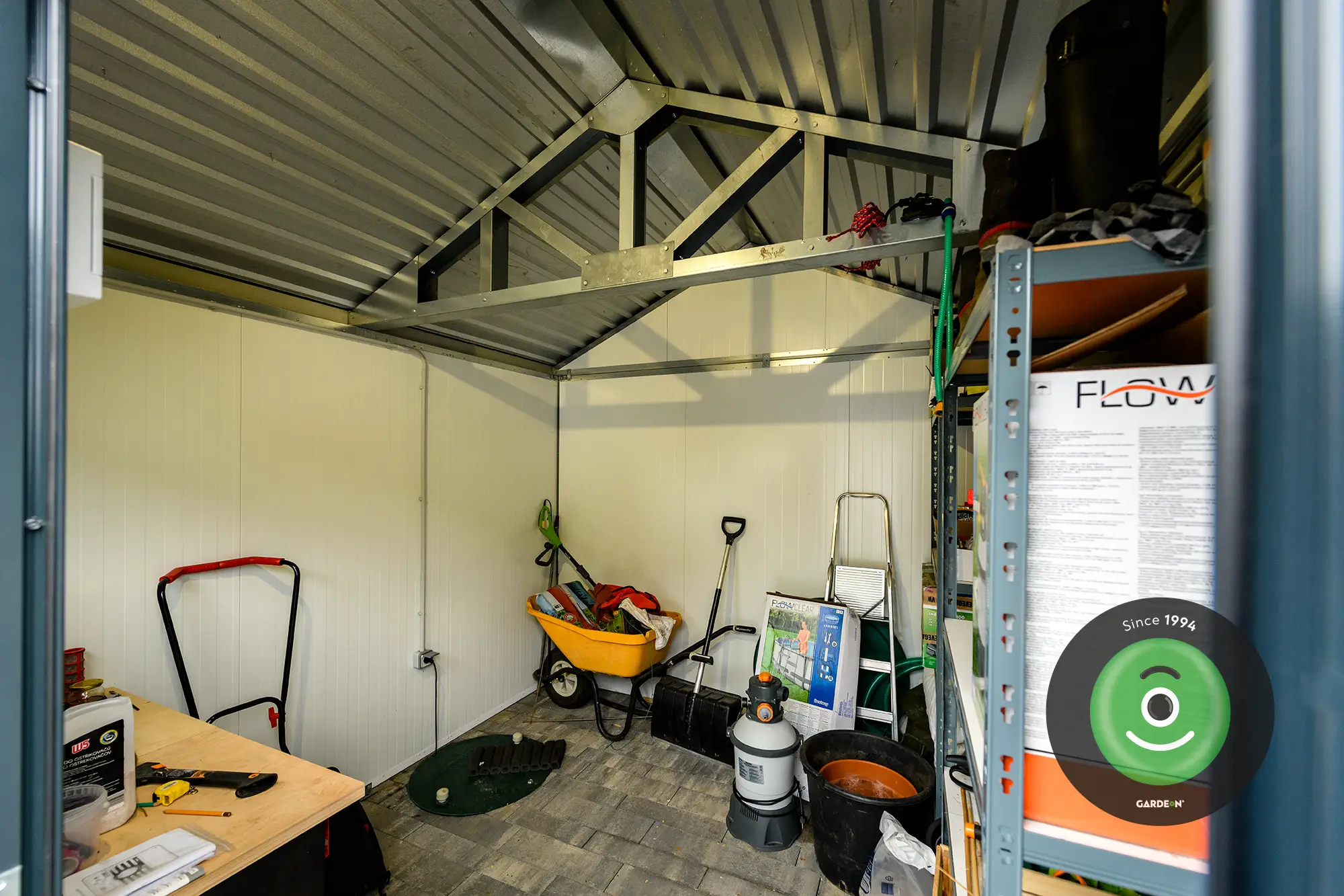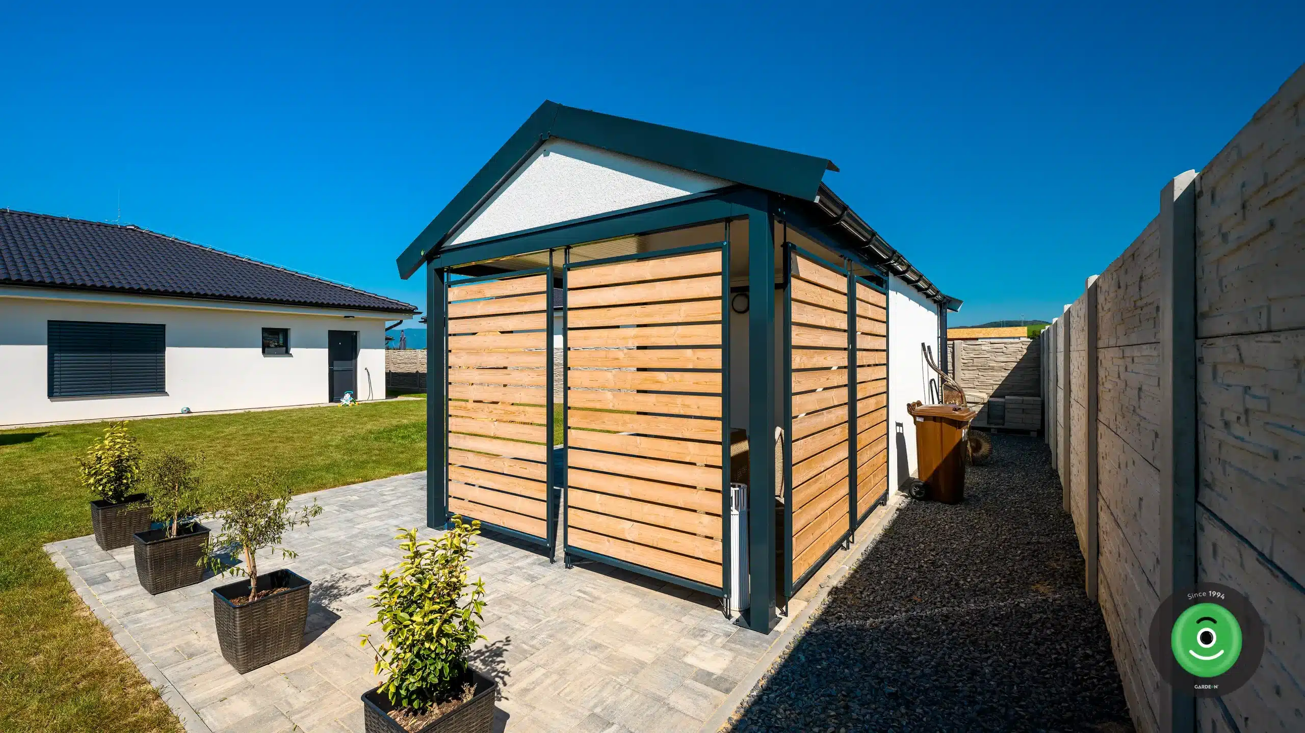A GARDEON nyeregtetős kerti tárolók elsősorban azoknak készültek, akik házépítéskor a jól bevált klasszikus megoldásokat részesítik előnyben. Persze nem csak nekik – a kert már önmagában is egy kicsit romantikus klasszikus, így a hagyományos formájú kerti tároló a modern családi házak mellett is tökéletesen megállja a helyét. A hagyományos formák és a modern anyagok ötvözete természetesen harmonizál a mai építészettel.