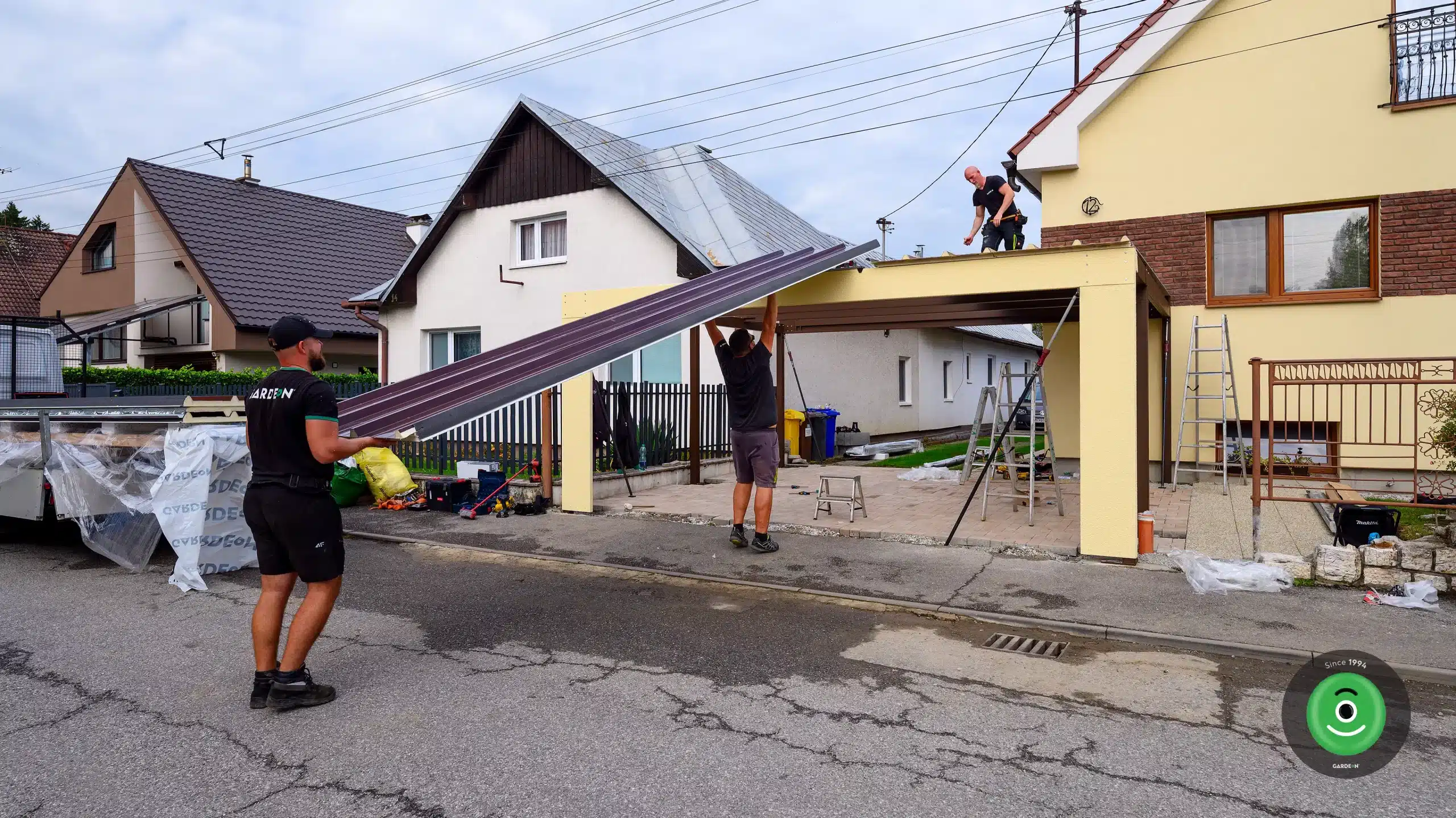 A lapostetős kocsibeállókhoz szállított Gardeon Thermopanel burkolat nagy stabilitásával és szilárdságával tűnik ki: