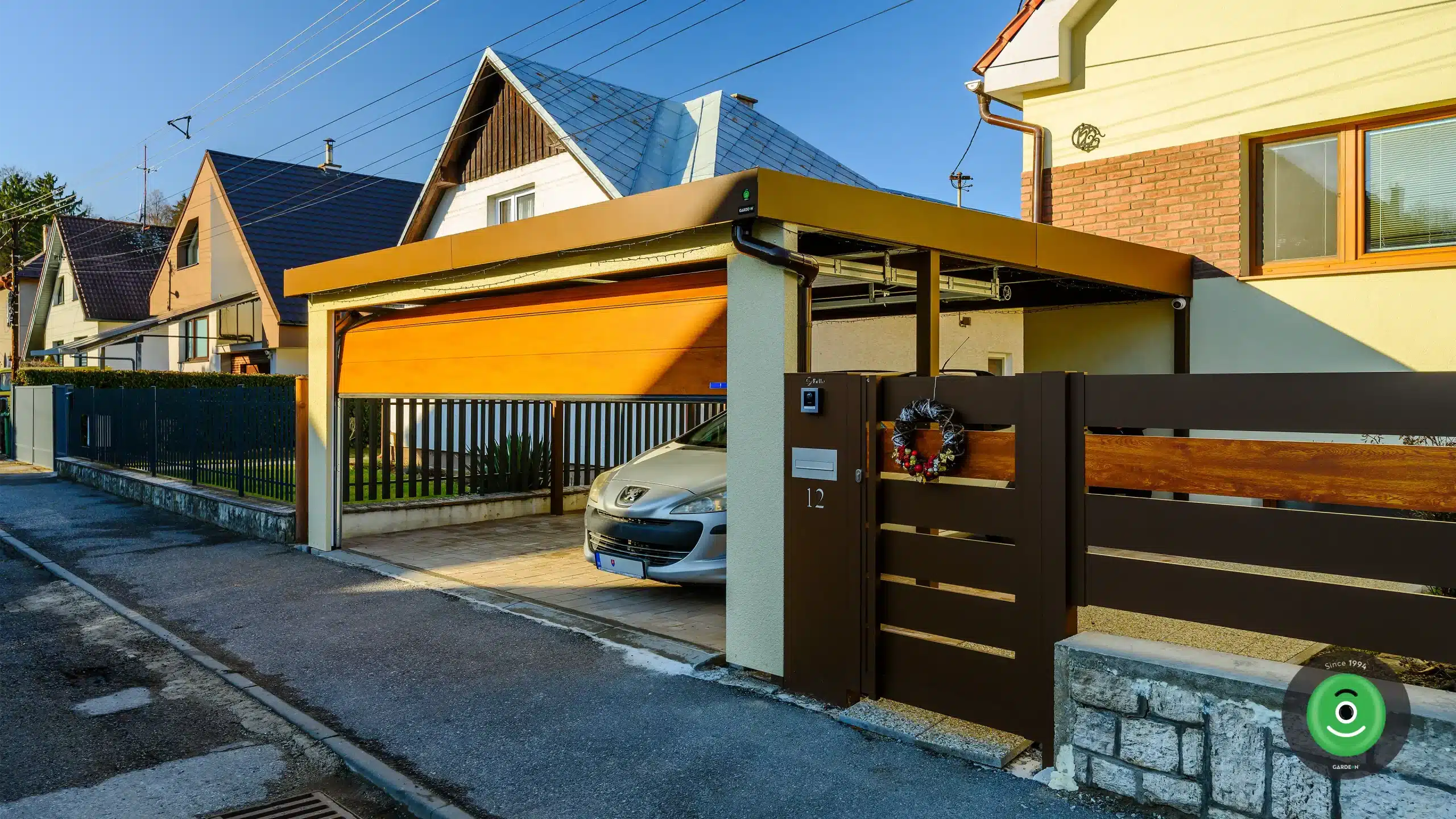 A garázskapuval és oldalfalakkal ellátott kocsibeálló fedett és biztonságos parkolást, biztonságos bejáratot és elegáns kerítést biztosít. Mindezt minimális helyigénnyel és kedvező áron.