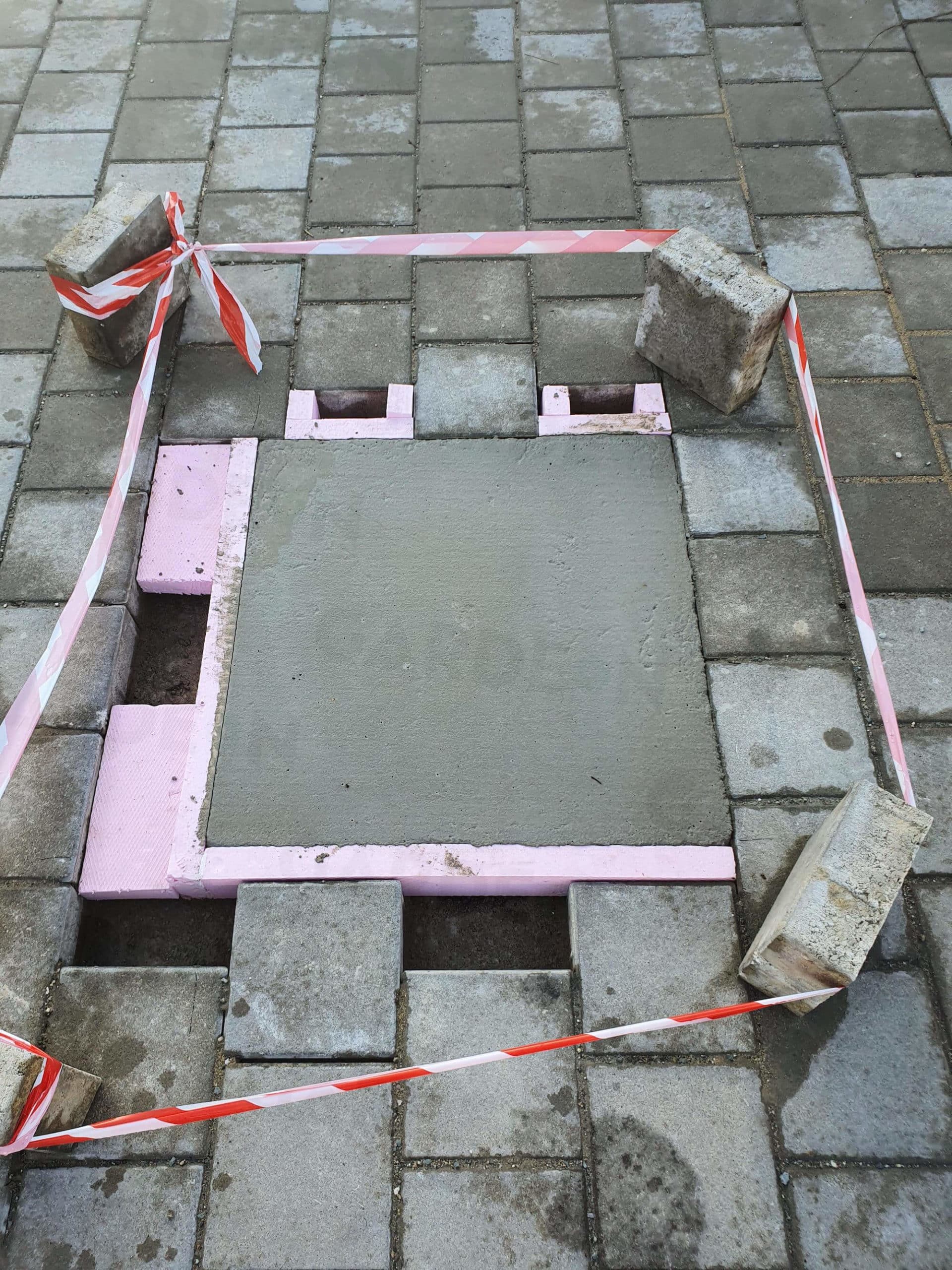 - A betonpillérek méretei (térkőben / alatt) min. 40 x 40 x 40 cm