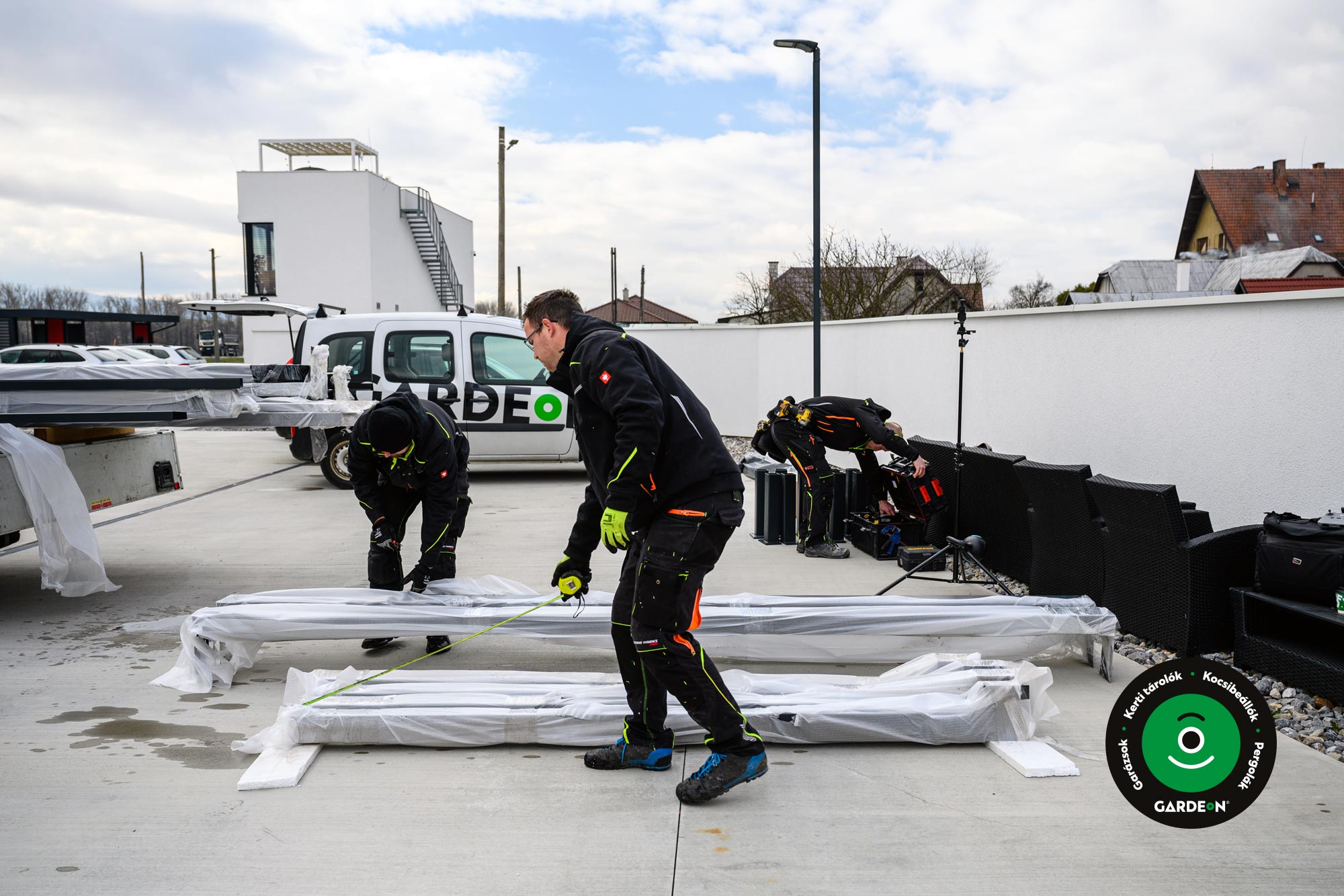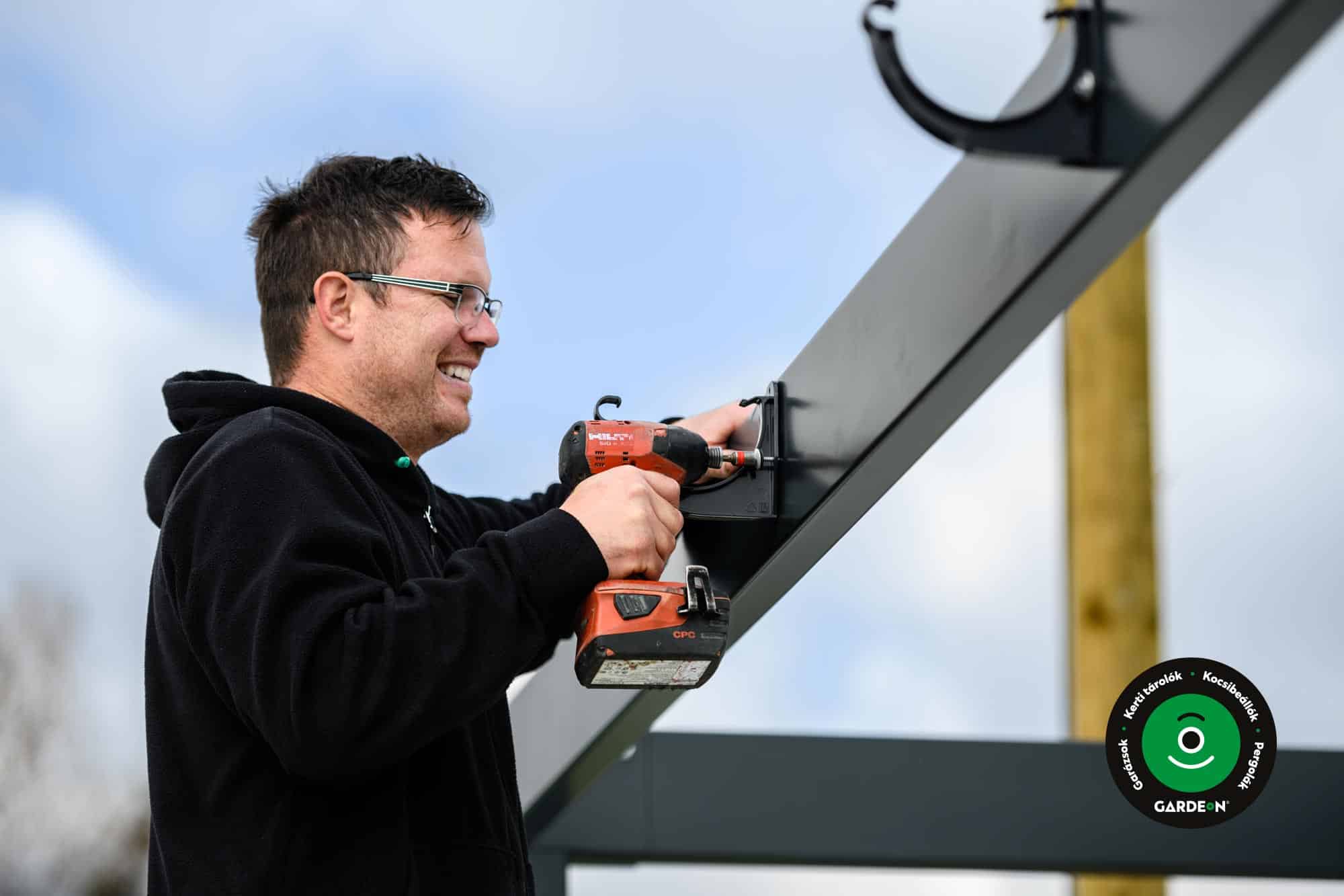Még elektromos csatlakozásra sincs szükségünk, mert professzionális akkus szerszámokkal dolgozunk. A megbeszélt időpontban minden szükséges alkatrészt és rögzítőelemet házhoz szállítunk, képzett szerelőink pedig néhány óra alatt felépítenek Önnek egy elegáns és praktikus új pergolát.