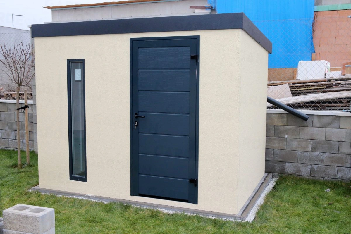 A kész vakolattal ellátott kerti ház egyszerű és természetes hatást kelt, így harmonikusan illeszkedik a legkülönbözőbb környezetbe.