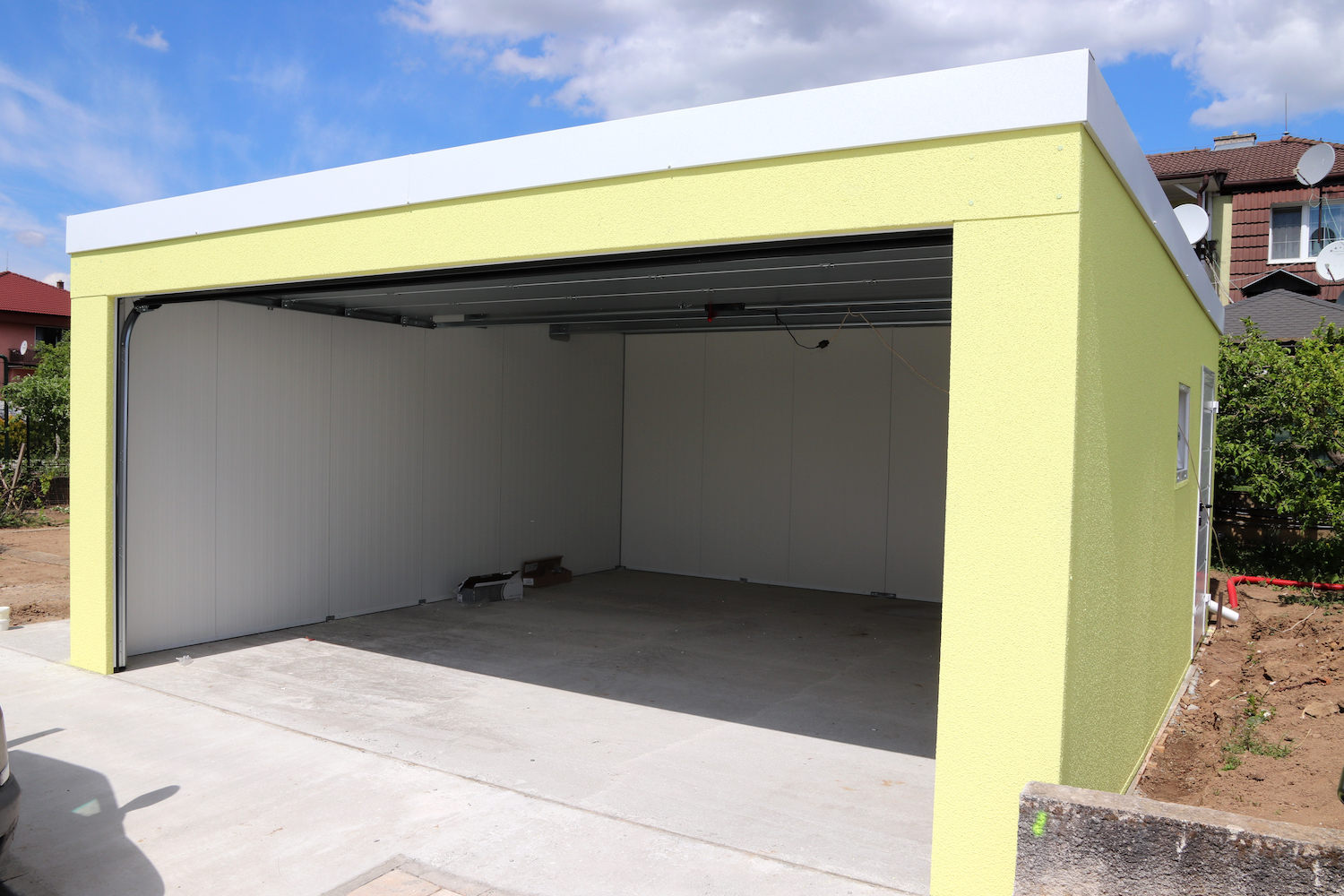 Nagy változatosságot kínálnak típusok és méretek tekintetében. A kedvező ár és a költségmegtakarítás szintén érdekes előnye az előre gyártott garázsoknak. Alapvető szerkezeti elemeik ugyanis a hőgalvanizált felületű, profilozott acéllemezből készült falak, és az acél ára lényegesen alacsonyabb, mint más anyagoké, például a betoné. A helymegtakarítás szintén az előre gyártott szerkezetek előnye. Mivel a megerősített fémfalak vastagsága mindössze 50 mm, a hagyományos falazathoz képest a garázs minden oldalán legalább 50 cm-t spórolhat. Vonzó megjelenésük van, amely színben és stílusban egyaránt az Ön elképzeléseihez igazodik. Különböző színek közül választhat a vakolat, a tetőfedés és a kiegészítők tekintetében, valamint választhat egyenes vagy nyeregtető között is. Az időmegtakarítás a szerelt építmények további előnye. Egy egyszerű garázst akár 6 óra alatt fel tudunk állítani az Ön telkén. Az egyetlen, amit meg kell tennie, hogy előre előkészítse a megfelelő alapot.